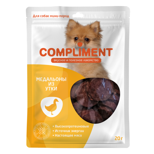 Комплимент/Compliment лакомство для собак мелких пород Медальоны из утки 20гр*100