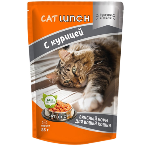 КэтЛанч/Cat Lunch пауч корм для кошек Кусочки в желе Курица 85г