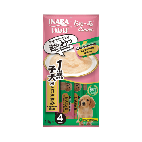 Инаба/INABA ЧАО ЧУРУ лакомство для щенков пюре филе курицы 14гр*4