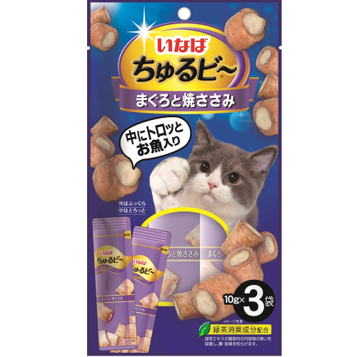 Инаба/INABA ЧУРУ-БИ лакомство для кошек запеченные трубочки тунец магуро и куриное филе 10гр*3