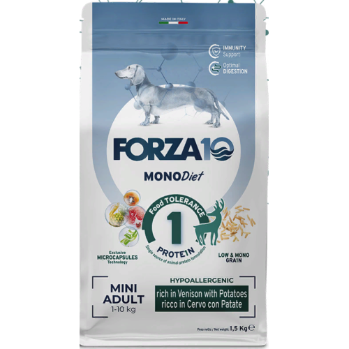 FORZA10 MINI DIET оленина c картофелем – это полнорационный диетический сухой корм для собак мелких пород.