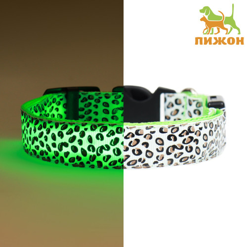 Ошейник с подсветкой "Леопард", 3 режима свечения, зелёный