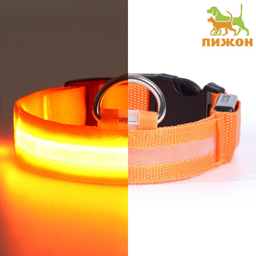 Ошейник с подсветкой рМ ОШ40-48см 2,5см 3 режима свечения оранжевый Пижон