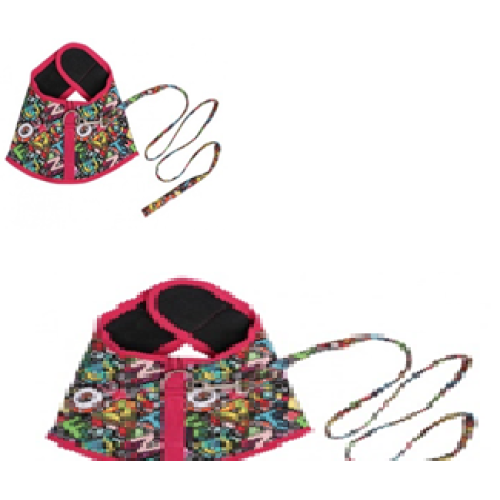 Комплект шлейка + поводок рL 43-48см красный в цветок LION