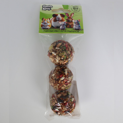 Смайл Кинг/Smile King лакомство для грызунов шарики MIX овощной/зерновой/фруктово-ореховый 75гр