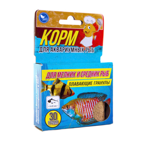 Аквакулинар корм для рыб мелких и средних повседневный коробка 30гр