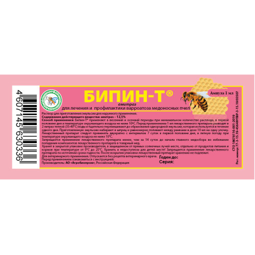 Бипин-Т 1мл/20доз (лечение и профил. варроатоза пчел)