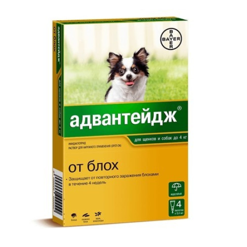 Адвантейдж для собак и щенков до 4кг (1 пипетка *4 с 4 недель (от блох)