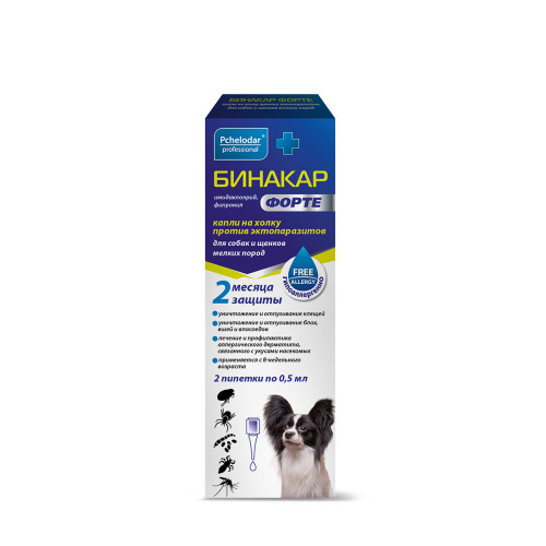 Бинакар Форте Капли на холку для собак и щенков мелких пород упаковка 2 пипетки 0,5мл*35