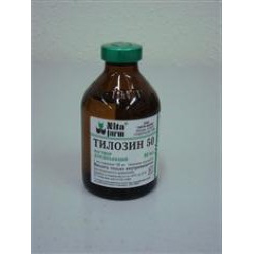 Инъекционный 5% раствор, в 1 мл которого в качестве действующего вещества содержится 50 мг тилозина...