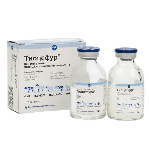 Тиоцефур - антибактериальный лекарственный препарат группы цефалоспоринов. Цефтиофур натрия - полусинтетический цефалоспорин 3-го поколения широкого спектра действия, активный против грамположительных и грамотрицательных бактерий (включая беталактамазообразующие штаммы и некоторые анаэробные бактерии). Цефтиофур действует на микроорганизмы бактерицидно. Механизм действия антибиотика заключается в блокировании транспептидаз, вызывающем нарушение связей между молекулами пептидогликана, что приводит к разрушению клеточной стенки микроорганизма.