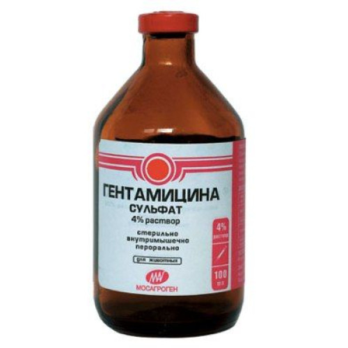 Действующее вещество гентамицина сульфат - 40 мг/мл. Обладает широким спектром антимикробного действия. Применяют крупному рогатому скоту, лошадям, овцам, свиньям, собакам и кошкам, внутримышечно два раза в сутки с интервалом 10-12 часов. Молоко, полученное от животных, подвергавшихся лечению гентамицином, запрещается использовать для пищевых целей в период лечения и в течение 72 часов после прекращения применения препарата. Такое молоко может быть использовано для кормления животных.