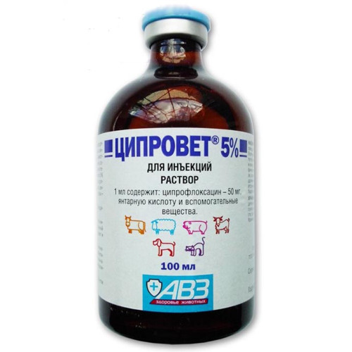 Максимальный объем Ципровета 5% для инъекций для введения в одно место не должен превышать для крупного рогатого скота – 15 мл, свиней – 10 мл, овец и телят – 5 мл, поросят – 2,5 мл.