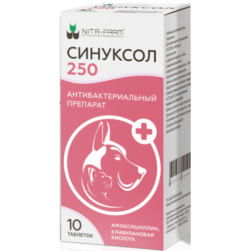 СИНУКСОЛ предназначен для лечения собак и кошек в дозировке 12,5 мг (по сумме двух ДВ) на 1 кг массы тела 2 раза в сутки.