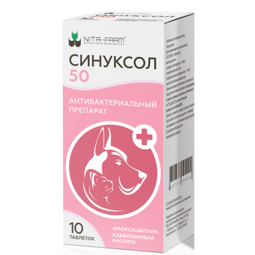 СИНУКСОЛ предназначен для лечения собак и кошек в дозировке 12,5 мг (по сумме двух ДВ) на 1 кг массы тела 2 раза в сутки.