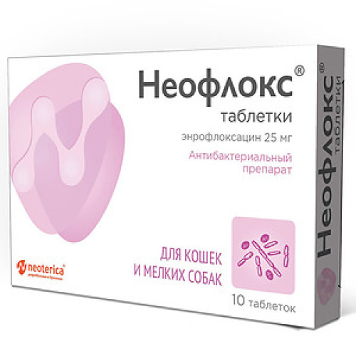 Таблетки Неофлокс применяют для лечения собак и кошек с заболеваниями дыхательной системы, желудочно-кишечного тракта и мочеполовой системы, инфекциями мягких тканей и среднего отита, инфицированными ранами и другими заболеваниями бактериальной и микоплазменной этиологии, возбудители которых чувствительны к энрофлоксацину. .
