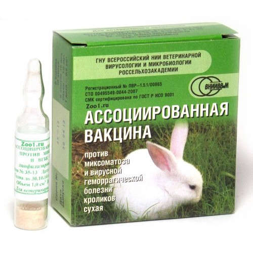Вакцина ассоциированная против миксоматоза и геморрагической болезни кроликов (ВГБК) 1фл - 10доз *10