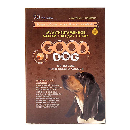 Мультивитаминное лакомcтво GOOD DOG для собак со вкусом "Норвежский лосось" 90 таб. подойдёт в качес..