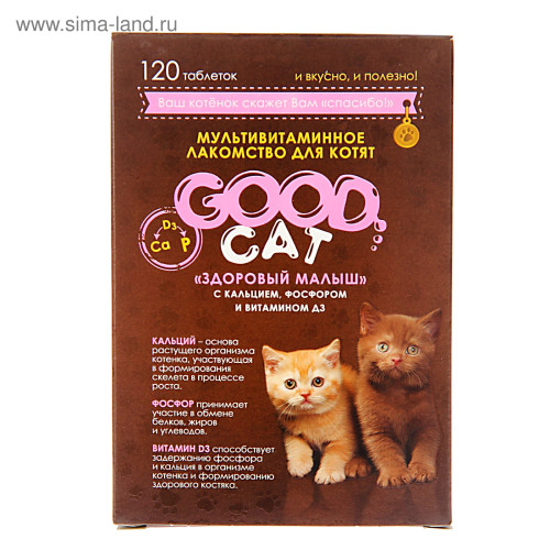 Мультивитаминное лакомcтво GOOD CAT для котят "Здоровый малыш" 120 таб. подойдёт в качестве дополнен..