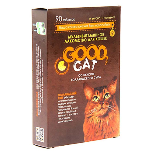 Мультивитаминное лакомcтво GOOD CAT для кошек "Голландский сыр" 90 таб. подойдёт в качестве дополнен..