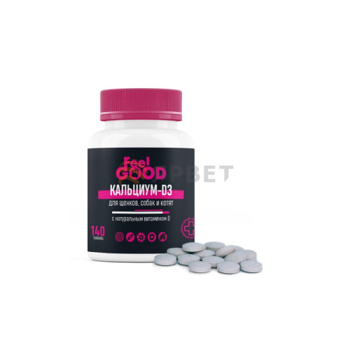 Кальциум-D3 с натуральным витамином D FeelGOOD для щенков, собак и котят — это композиция фундамента..