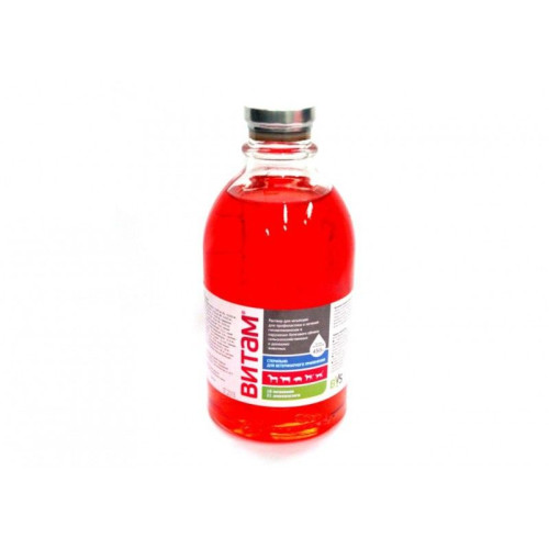 Витаминно-аминокислотный комплекс «Витам» в 1000 мл содержит глюкозу — 1 г; аскорбиновую кислоту — 0,075 мг; витамин В1 — 0,015 мг; витамин В2 —0,015 мг; витамин В3 — 0,015 мг; витамин В6 — 0,037 мг; фолиевую кислоту — 0,015 мг; никотиновую кислоту — 0,037 мг; никотинамид — 0,037 мг; биотин — 0,015 мг; парааминобензойную кислоту — 0,074 мг; холин хлорид — 60 мг; витамин D3 — 0,015 мг; натрий хлористый — 0,8 г; калий хлористый — 0,4 г; магний хлористый — 0,1 г; натрий фосфорнокислый — 0,075 г; калий фосфорнокислый — 0,06 г; натрий углекислый — 0,6 г; аргинин — 60 мг; лизин — 60 мг; лейцин — 52 мг; фенилаланин — 21,5 мг; треонин — 26 мг; триптофан — 8,6 мг; валин — 21,5 мг; тирозин — 34,6 мг; серин — 21,5 мг; глицин — 43 мг; альфа-аланин — 21,5 мг; пролин — 32 мг; аспарагиновую кислоту — 26 мг; оксипролин — 8,6 мг; глутаминовую кислоту — 60 мг; цистеин — 0,15 мг, а также в качестве растворителя воду для инъекций. По внешнему виду представляет собой прозрачную жидкость красно-оранжевого цвета. Выпускают в виде стерильного раствора расфасованного в стеклянные флаконы по 450 мл.