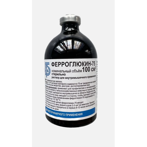 Ферроглюкин-75 способствует стимуляции эритропоэза и гемоглобинообразования, повышению общей резистентности организма животных. Из места инъекции декстран железа всасывается в кровь и депонируется в печени, кроветворных органах и постепенно расходуется для синтеза гемоглобина. Потребность организма в железе повышена в период роста, при беременности и потере крови.