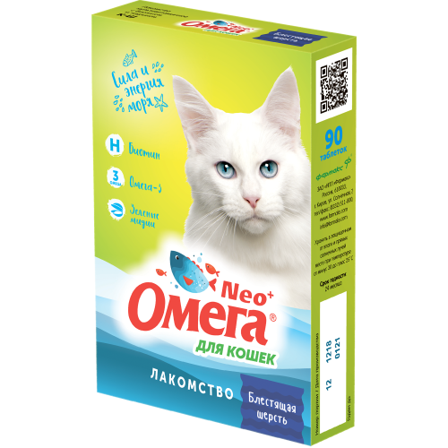 c Омега-Нео + для кошек Блестящая шерсть (биотин, зеленые мидии, омега3) 90 таб*5