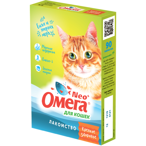 Омега-Нео + для кошек Крепкое Здоровье (морские водоросли, зеленые мидии, омега3) 90 таб*5
