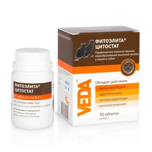 ФИТОЭЛИТА® ЦИТОСТАТ применяют собакам и кошкам для профилактики злокачественных новообразований моло..