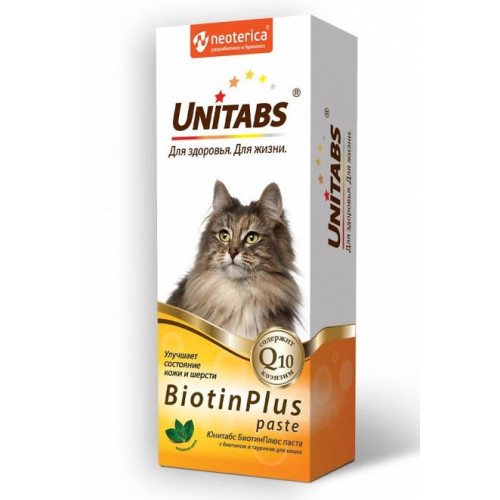 1.Юнитабс БиотинПлюс паста применяется для улучшения состояния кожи и шерсти у кошек.