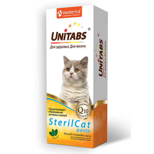 SterilCat Паста для кастрированных котов и стерилизованных кошек. Предотвращает образование мочевых камней. Вкусная паста с кошачьей мятой привлекает кошку, обеспечивая беспроблемное скармливание. Легко усваивается организмом. Удобно применять, когда не получается дать таблетку. Содержит коэнзим Q10.