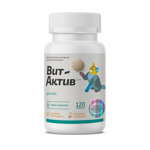Вит-Актив - витаминно-минеральный комплекс для обеспечения физиологических потребностей котят в витаминах, аминокислотах и минеральных веществах, обогащения рациона природными антиоксидантами и пребиотиками