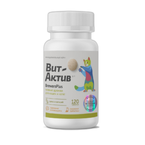 Вит-Актив БреверсПлюс К-П для кошек и котят пивные дрожжи 120таб*6