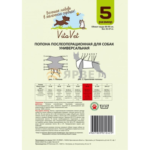 Попона послеоперационная для собак №5 (обхват груди 80-90см, 35-47кг) Vita Vet