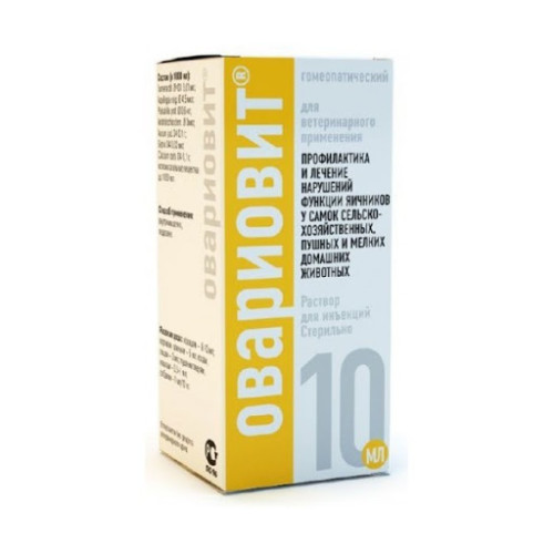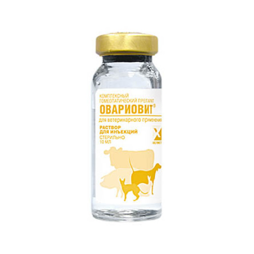 Применение Овариовита не исключает использования других лекарственных средств этиотропной, патогенетической и симптоматической терапии.Фармакологические свойстваОвариовит оказывает регулирующее действие при нарушении функции яичников у самок: гипофункция яичников, фолликулярные кисты яичников, персистентное желтое тело. По степени токсического воздействия на организм теплокровных животных препарат относится к малоопасным веществам, не обладает местнораздражающим и сенсибилизирующим действием. Гомеопатические компоненты, входящие в состав Овариовита в сверхмалых дозах, не накапливаются в организме животного.