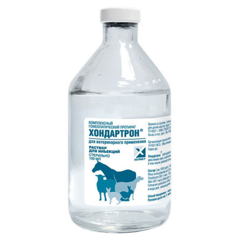 Хондартрон раствор для инъекций вводят животным подкожно или внутримышечно. Разовая доза препарата на одно животное составляет: крупному рогатому скоту — 5 – 10 мл; лошадям — 10 – 15 мл; свиньям — 2,5 – 5 мл; козам, овцам, телятам, жеребятам и поросятам — 2 – 2,5 мл; собакам крупных и средних пород — 2 – 4 мл; собакам мелких пород, щенкам, кошкам и котятам — 0,5 – 2 мл; хорькам и фреткам — 0,5 мл и грызунам по 0,2 – 0,3 мл. Для каждого животного необходимо использовать отдельную стерильную иглу. В острых случаях заболевания препарат применяют 1 – 2 раза в сутки, при хроническом течении болезни — 2 – 3 раза в неделю. Длительность курса лечения при остром течении заболевания составляет 10 – 14 дней, при хроническом течении — 2 – 4 недели. При необходимости курс лечения повторяют. Применение Хондартрона не исключает использования других лекарственных средств этиотропной, патогенетической и симптоматической терапии.