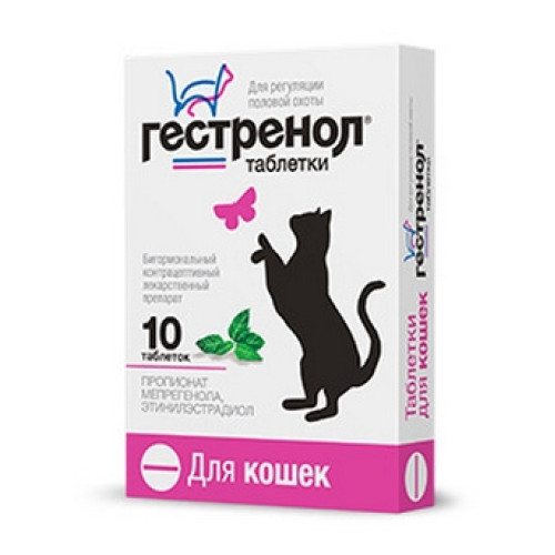 Лекарственный препарат Гестренол таблетки применяют: кошкам для регуляции половой охоты, прерывания и задержки течки, а также предотвращения нежелательной беременности, котам — для регуляции половой охоты и связанного с ней агрессивного поведения, мечения территории.