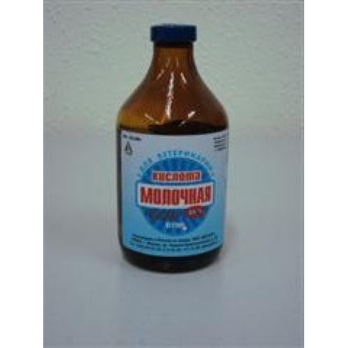 Для профилактики и лечения энтеритов, гастритов с пониженной секреторной функцией, острого расширения желудка у лошадей, тимпании у жвачных, метеоризме молочную кислоту 40 % применяют внутрь в дозах на одну голову: лошадям 8,0 – 35,0 мл; крупному рогатому скоту 12,0 – 40,0 мл; мелкому рогатому скоту 2,5 – 7,5 мл; свиньям 1,5 – 7,5 мл; поросятам при острой диарее (при хронической не даёт эффекта) 0,5 – 1,0 мл; собакам 0,2 – 2,5 мл; лисицам и песцам 1,5 – 2,5 мл задают в водном растворе не более 2 % концентрации (1 мл молочной кислоты 40 % растворить в 20 мл воды или 5 мл молочной кислоты 40 % — в 100 мл воды). Для повышения яйценоскости кур-несушек, выводимости цыплят, прочности скорлупы (обычно с начала яйцекладки на протяжении 3 – 4 мес.) и среднесуточного привеса бройлеров в рацион добавляют молочную кислоту 40 % в дозе 0,5 мл на 1 кг корма (500 мл молочной кислоты 40 % на 1 тонну корма). При трихомонозе крупного рогатого скота влагалище местно спринцуют в виде 1 % теплого водного раствора. Наружно молочную кислоту используют для обработки язв кожи и слизистой оболочки, а также для прижигания ороговевших наростов, новообразований, бородавок, мозолей в виде 10 – 40 % растворов. Для дезинфекции воздуха птичников в присутствии птицы при пуллорозе, тифе, холере, инфекционном ларинготрахеите, респираторном микоплазмозе, а также в инкубаторах распыляют 20 % молочную кислоту в виде аэрозоля из расчета 15 – 20 мл на куб. метр при экспозиции 30 – 45 минут.
