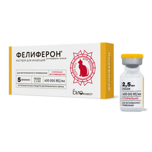 Фелиферон – первый российский препарат интерферона кошки показан к применению при широком спектре значимых и часто встречаемых заболеваний. Активное действующее вещество – рекомбинантный интерферон омега кошки. Препарат выпускается в форме раствора для инъекций, вводится внутримышечно. Видовая специфичность интерферонов является залогом наибольшего эффекта. Высокая эффективность видоспецифичного препарата обеспечивается за счет наибольшего сродства к рецепторам на поверхности «родных» клеток в сочетании с отсутствием риска побочных явлений.