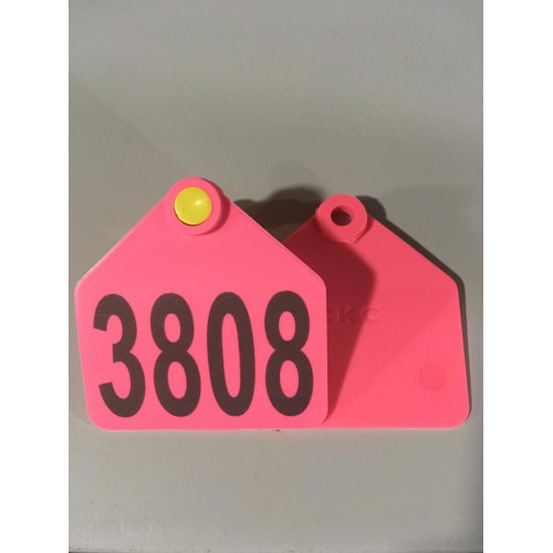 Бирка ушная двойная средняя КРС 55*55 мм розовая №3 с номером 100 шт