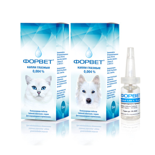 Форвет глазные капли – отечественный инновационный препарат для кошек и собак, обладающий противовирусным и иммуномодулирующим действиями. Препарат растительного происхождения, безопасен для котят, щенков и беременных животных, не вызывает жжения глаз. Оказывает противовоспалительный и регенерирующий эффект.