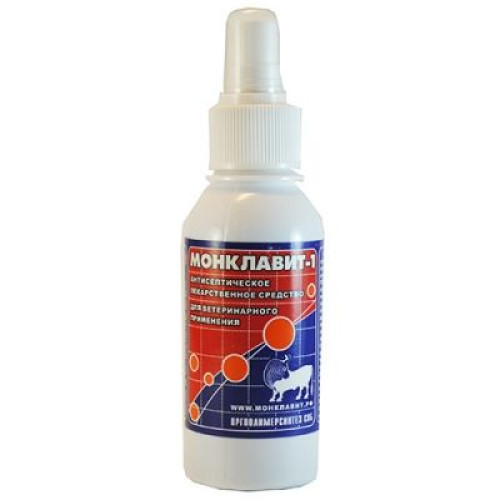 МОНКЛАВИТ-1 — антисептическое и дезинфицирующее лекарственное средство широкого спектра действия для ветеринарного применения, водно-полимерная система на основе йода в форме комплекса поли-N-виниламидациклосульфойодида. По внешнему виду представляет собой прозрачную жидкость красновато-коричневого цвета. При включении в молекулу высокополимера йод теряет токсические и раздражающие свойства, но полностью сохраняет свою активность как микроэлемент и антисептик. Содержащийся в препарате йод стимулирует общий обмен веществ и повышает неспецифический иммунитет