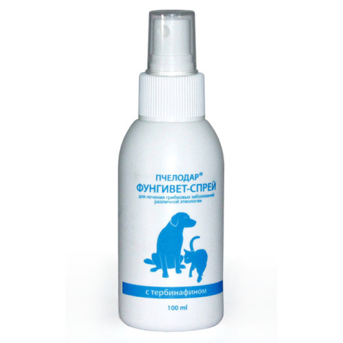 Входящий в состав тербинафин оказывает фунгицидное действие в отношении дерматофитов (Trichophyton rubium, T.mentagrophytes, T.verrucosum, T.violaceum, T.tonsurans, Microsporum canis, Epidermophyton floccosum), плесневых (в основном, C.albicans) и определенных диморфных грибов (Pityrosporum orbiculare). Активность в отношении дрожжевых грибов, в зависимости от их вида, может быть фунгицидной или фунгистатической. Экстракт прополиса благодаря своему сложному биологическому составу обладает разносторонним действием: бактериостатическим, противогрибковым, анестизирующим, противовоспалительным, противозудным. Фунгивет не оказывает влияния на систему цитохрома Р450 у животных и, соответственно, на метаболизм гормонов или других лекарственных препаратов. При местном применении абсорбция менее 5%, оказывает незначительное системное действие.