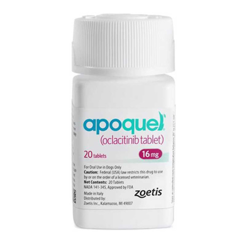 Апоквел выпускают в трех дозировках, содержащих в 1 таблетке в качестве действующего вещества оклацитиниба малеат (в пересчете на оклацитиниб) 3,6 мг; 5,4 мг и 16 мг соответственно, а также вспомогательные вещества: микрокристаллическую целлюлозу, лактозы моногидрат, карбоксиметил-крахмал натрия, магния стеарат, плёнкообразователь «Opadry II White» и воду очищенную.