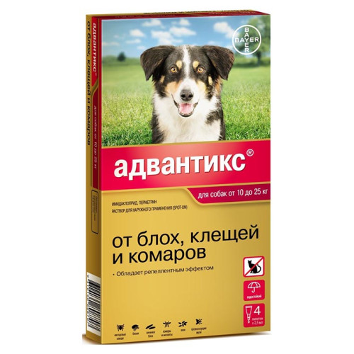 Адвантикс 250 для собак 10-25кг, 1 пипетка *4 (от блох, клещей и комаров)