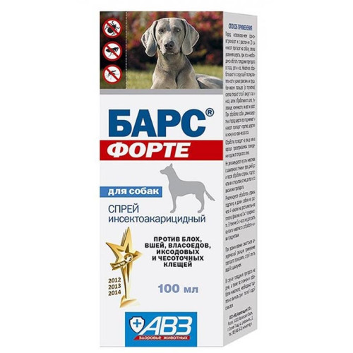 С лечебной и профилактической целью при энтомозах (вши, блохи, волосовики), саркоптоидозах, поражении иксодовыми клещами, а также для предотвращения нападения эктопаразитов на животных. Спрей «Барс Форте» обеспечивает защиту животных от иксодовых клещей на срок не менее одного месяца, от блох и других насекомых не менее двух месяцев.