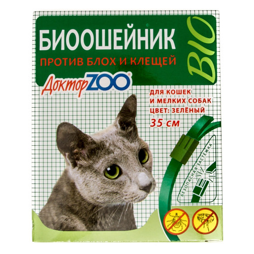 Доктор Зоо ошейник БИО для кошек и мелких собак (зеленый) 35см*6