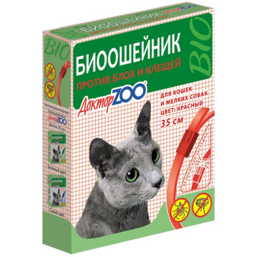 Доктор Зоо ошейник БИО для кошек и мелких собак (красный) 35см*6