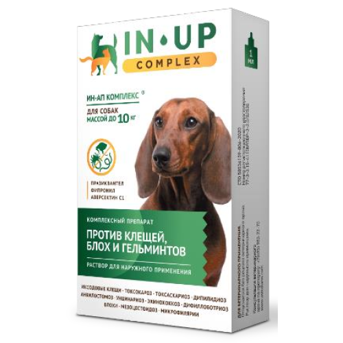 ИН-АП комплекс – лечебно-профилактическое антипаразитарное средство, обладающее комплексной инсектоакарицидной и антигельминтной активностью против личиночных и половозрелых фаз развития эктопаразитов (блох, иксодовых клещей, вшей, власоедов) и эндопаразитов (круглых и ленточных гельминтов), паразитирующих у собак и щенков. ИН-АП комплекс выпускается в форме раствора для наружного применения. Препарат обеспечивает самую длительную среди конкурентных торговых марок защиту животного от паразитов – до 50-ти дней.